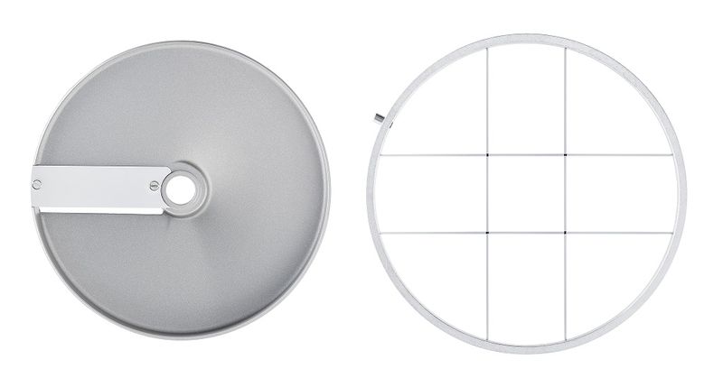 комплект 28180W: диск 28133 + решетка 104031, для R502, CL50/52/55/60 Диск Robot Coupe 28180 служит для нарезки кубиками колбас, твердых сыров, копченостей и других гастрономических продуктов. Нарезанные продукты используются для приготовления супов, рагу и салатов. Размер кубика 50х70х25 мм. Изготовлен из алюминия.
