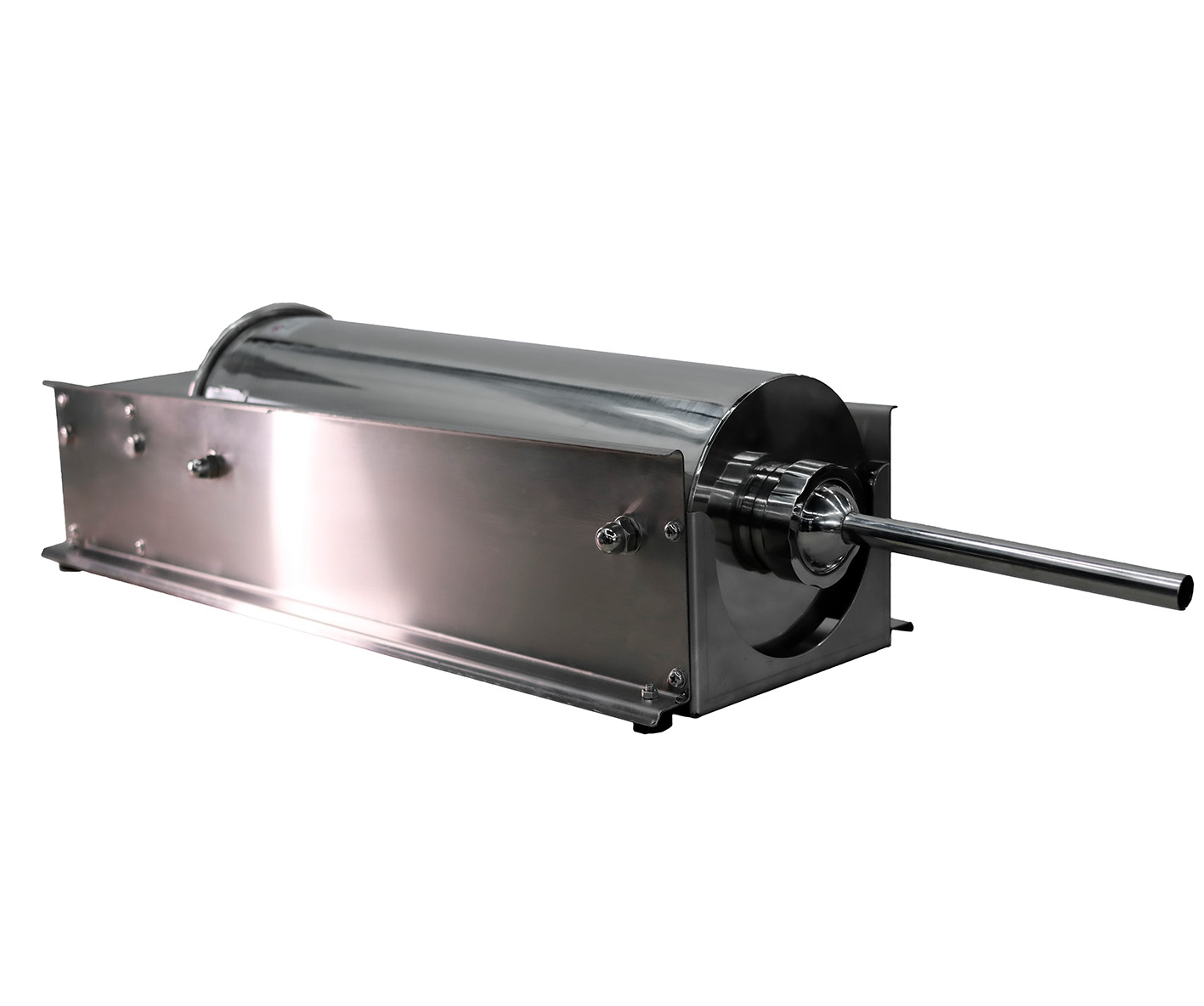 Горизонтальный механический шприц TG-5L предназначен для изготовления колбас, сосисок, сарделек, паштетов и другой продукции в оболочке из натуральных и искусственных материалов. Набор включает 4 насадки (наполнители) с диаметром 16,19,25 и 38мм, длиной 180 мм.