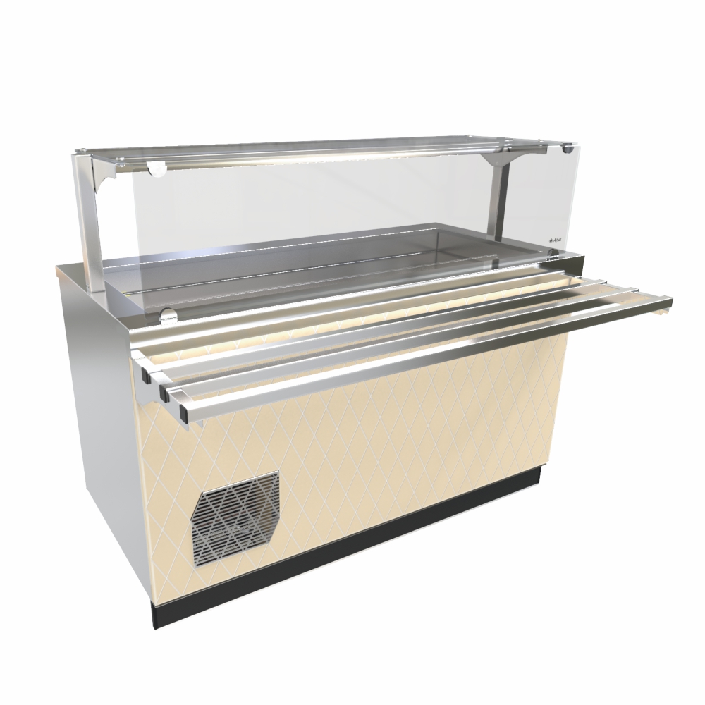 Прилавок-витрина холодильный предназначен для кратковременного хранения, демонстрации и раздачи холодных закусок и третьих блюд. Используется на предприятиях общественного питания в составе технологических линий раздачи или как самостоятельное изделие.