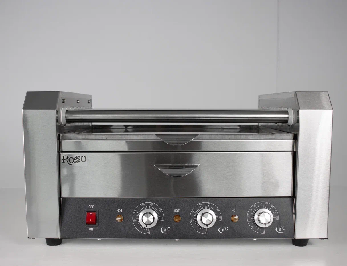 Имеет прозрачный колпак с крышкой, что позволяет поддерживать заданную температуру сосисок.
