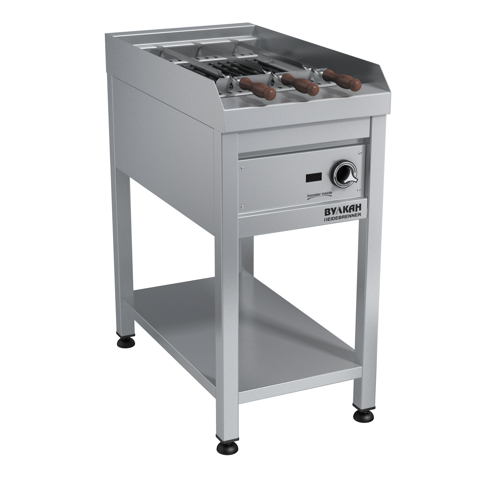 Напольная электрическая шашлычница из нержавеющей стали с 1-ой зоной нагрева. Особенность этой шашлычницы – наличие лавовых камней, долго держащих тепло и выполняющих роль раскаленных углей. Капли жира, попадая на камни, образуют лёгкий дымок, придающий мясу неповторимый вкус. Добавив на камни немного древесной стружки, вы получите продукт с тонким ароматом копчения. Шампура из нержавеющей стали имеют удобную деревянную ручку и специальную геометрию для фиксации их в разных положениях. *Предложение не является публичной офертой. *Изображение на фото, может отличаться от реального.