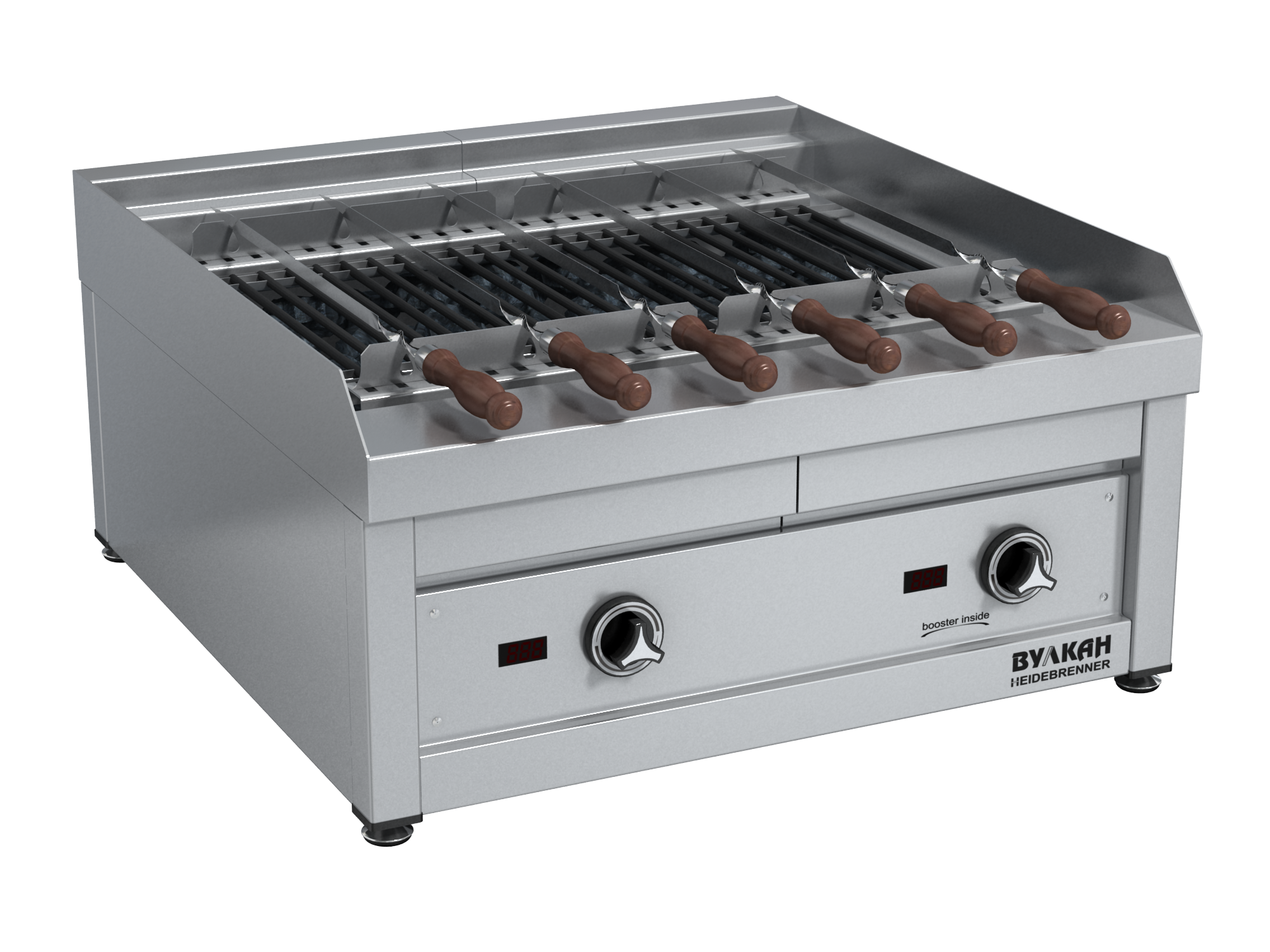 Настольная электрическая шашлычница из нержавеющей стали с 2-мя зонами нагрева. Особенность этой шашлычницы – наличие лавовых камней, долго держащих тепло и выполняющих роль раскаленных углей. Капли жира, попадая на камни, образуют лёгкий дымок, придающий мясу неповторимый вкус. Добавив на камни немного древесной стружки, вы получите продукт с тонким ароматом копчения. Шампура из нержавеющей стали имеют удобную деревянную ручку и специальную геометрию для фиксации их в разных положениях. *Предложение не является публичной офертой. *Изображение на фото, может отличаться от реального.