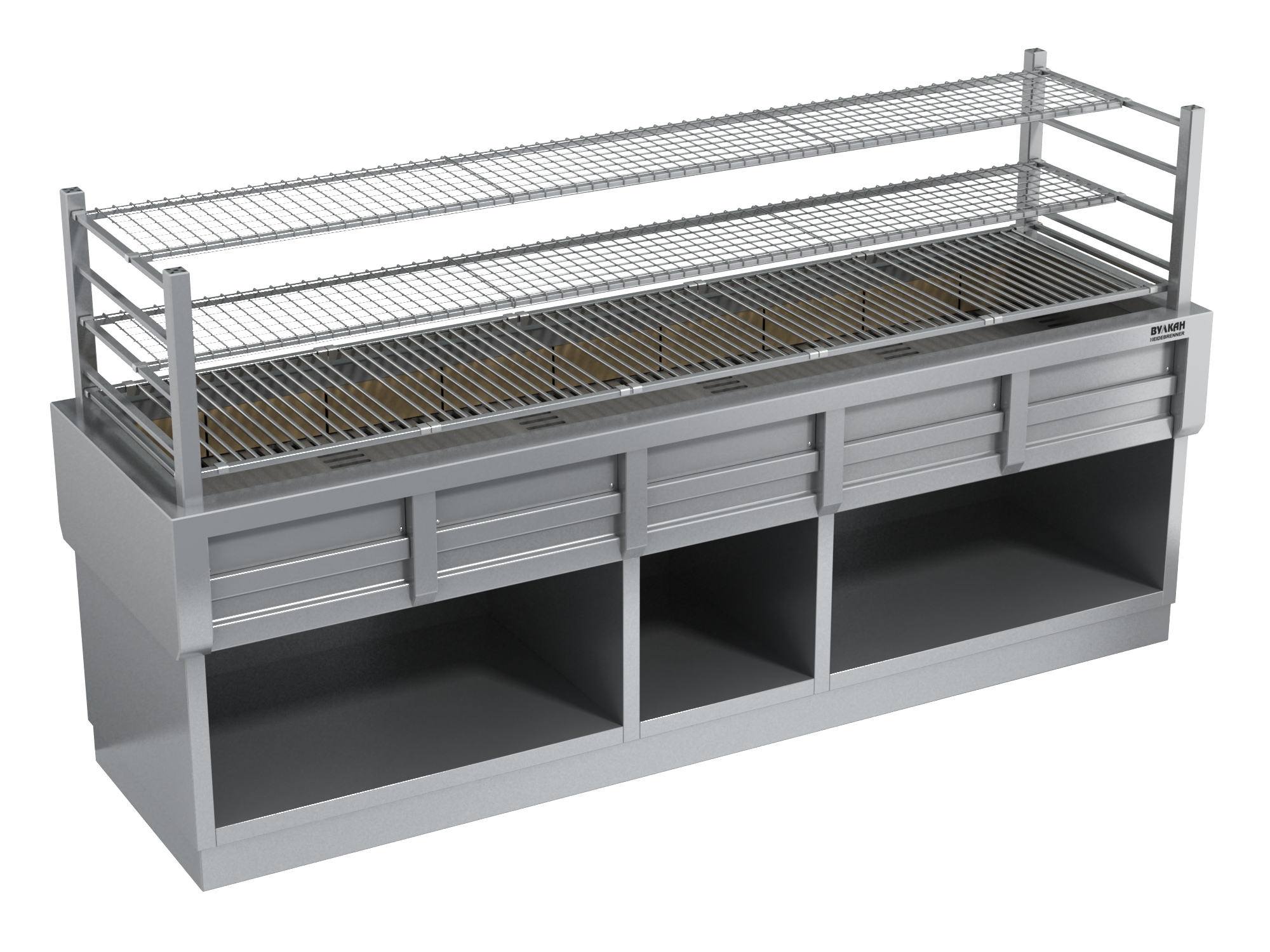 Напольный угольный гриль из нержавеющей стали. На нем можно готовить рыбу, морепродукты, мясо, птицу, овощи и якитори.Мангал выложен огнеупорным камнем, выдвижные зольники, 3 уровня решеток: нижний-обжарка на огне, средний-прожаривание, верхний-сохранение готового блюда горячим. В нижней части - ниша для хранения кухонного инвентаря или угля, мангал: 2298х375х138 *Предложение не является публичной офертой. *Изображение на фото, может отличаться от реального.