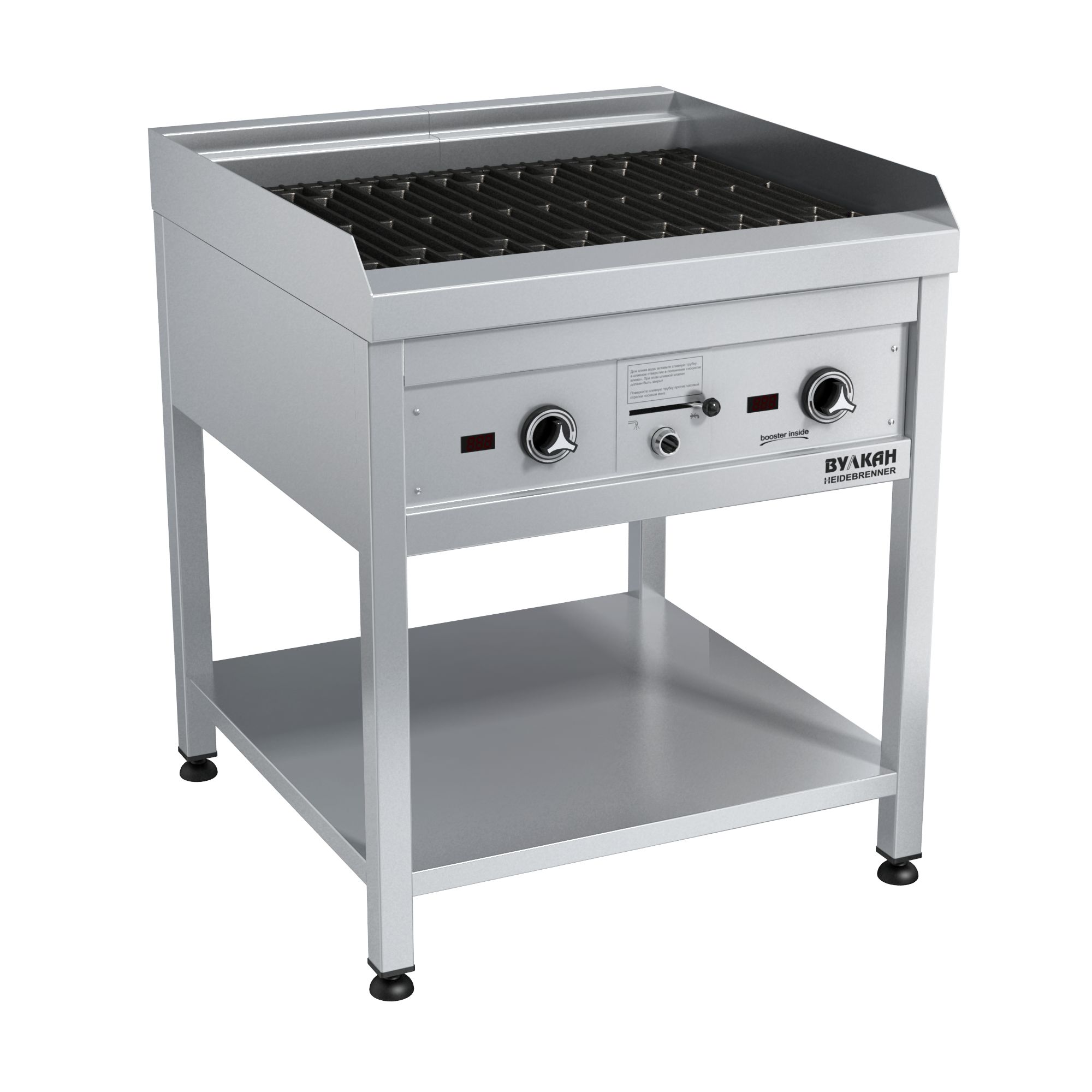 Напольный водяной гриль из нержавеющей стали с 2-мя зонами нагрева. Отличительная черта водяного гриля – наличие поддона с водой. Испаряющаяся вода создает эффект «водяной бани», благодаря чему продукты не только равномерно прожариваются, но и приобретают необыкновенную сочность и мягкость. Использование воды также существенно снижает образование дыма и чада. Для качественной прожарки и получения рельефного узора используются чугунные решетки, обладающие отличными антипригарными свойствами. *Предложение не является публичной офертой. *Изображение на фото, может отличаться от реального.