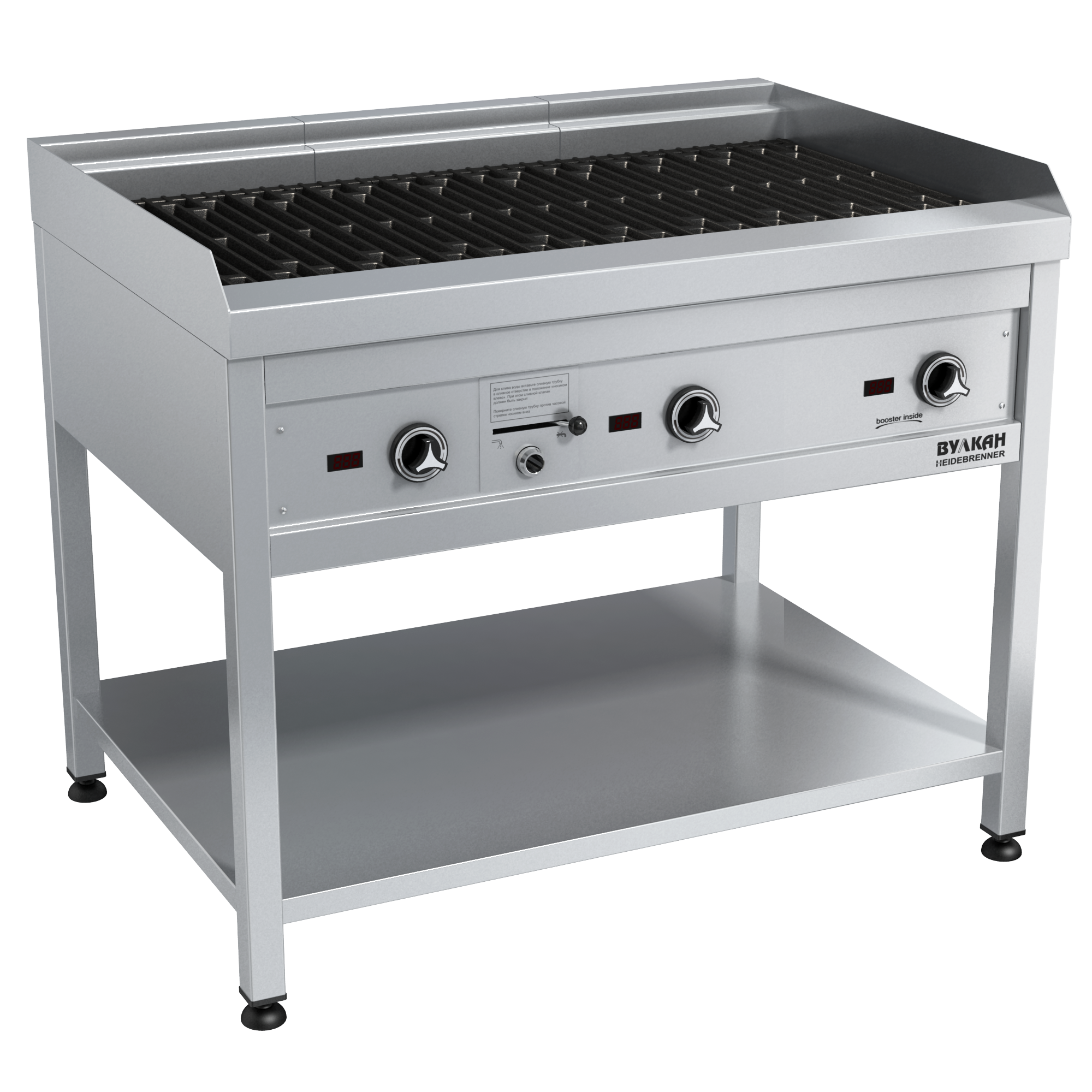 Напольный водяной гриль из нержавеющей стали с 3-мя зонами нагрева. Отличительная черта водяного гриля – наличие поддона с водой. Испаряющаяся вода создает эффект «водяной бани», благодаря чему продукты не только равномерно прожариваются, но и приобретают необыкновенную сочность и мягкость. Использование воды также существенно снижает образование дыма и чада. Для качественной прожарки и получения рельефного узора используются чугунные решетки, обладающие отличными антипригарными свойствами. *Предложение не является публичной офертой. *Изображение на фото, может отличаться от реального.