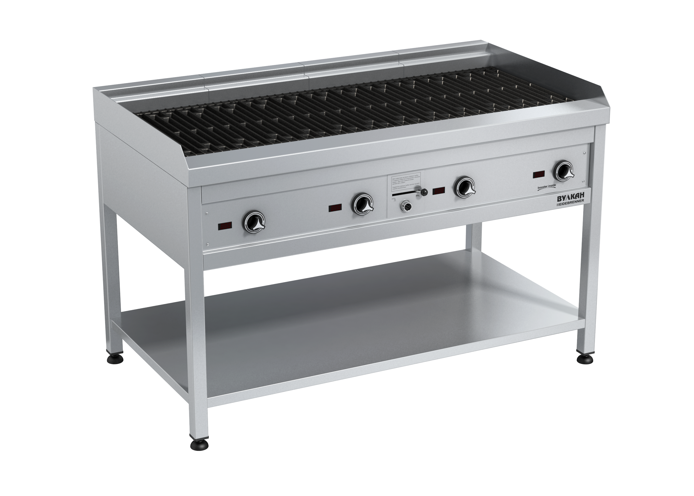 Напольный водяной гриль из нержавеющей стали с 4-мя зонами нагрева. Отличительная черта водяного гриля – наличие поддона с водой. Испаряющаяся вода создает эффект «водяной бани», благодаря чему продукты не только равномерно прожариваются, но и приобретают необыкновенную сочность и мягкость. Использование воды также существенно снижает образование дыма и чада. Для качественной прожарки и получения рельефного узора используются чугунные решетки, обладающие отличными антипригарными свойствами. *Предложение не является публичной офертой. *Изображение на фото, может отличаться от реального.