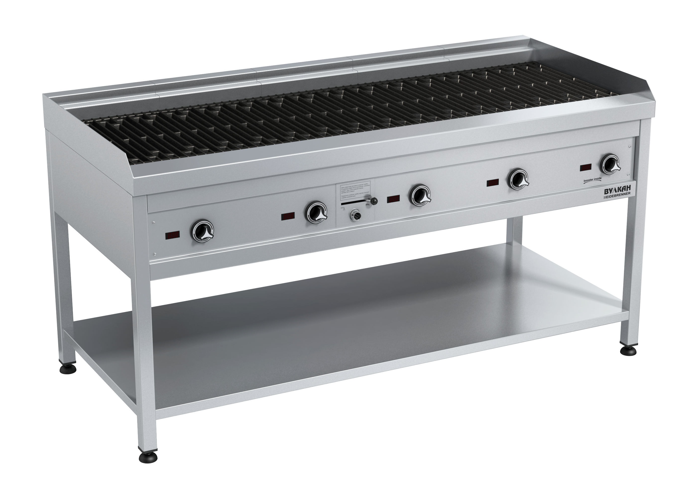 Напольный водяной гриль из нержавеющей стали с 5-ю зонами нагрева. Отличительная черта водяного гриля – наличие поддона с водой. Испаряющаяся вода создает эффект «водяной бани», благодаря чему продукты не только равномерно прожариваются, но и приобретают необыкновенную сочность и мягкость. Использование воды также существенно снижает образование дыма и чада. Для качественной прожарки и получения рельефного узора используются чугунные решетки, обладающие отличными антипригарными свойствами. *Предложение не является публичной офертой. *Изображение на фото, может отличаться от реального.