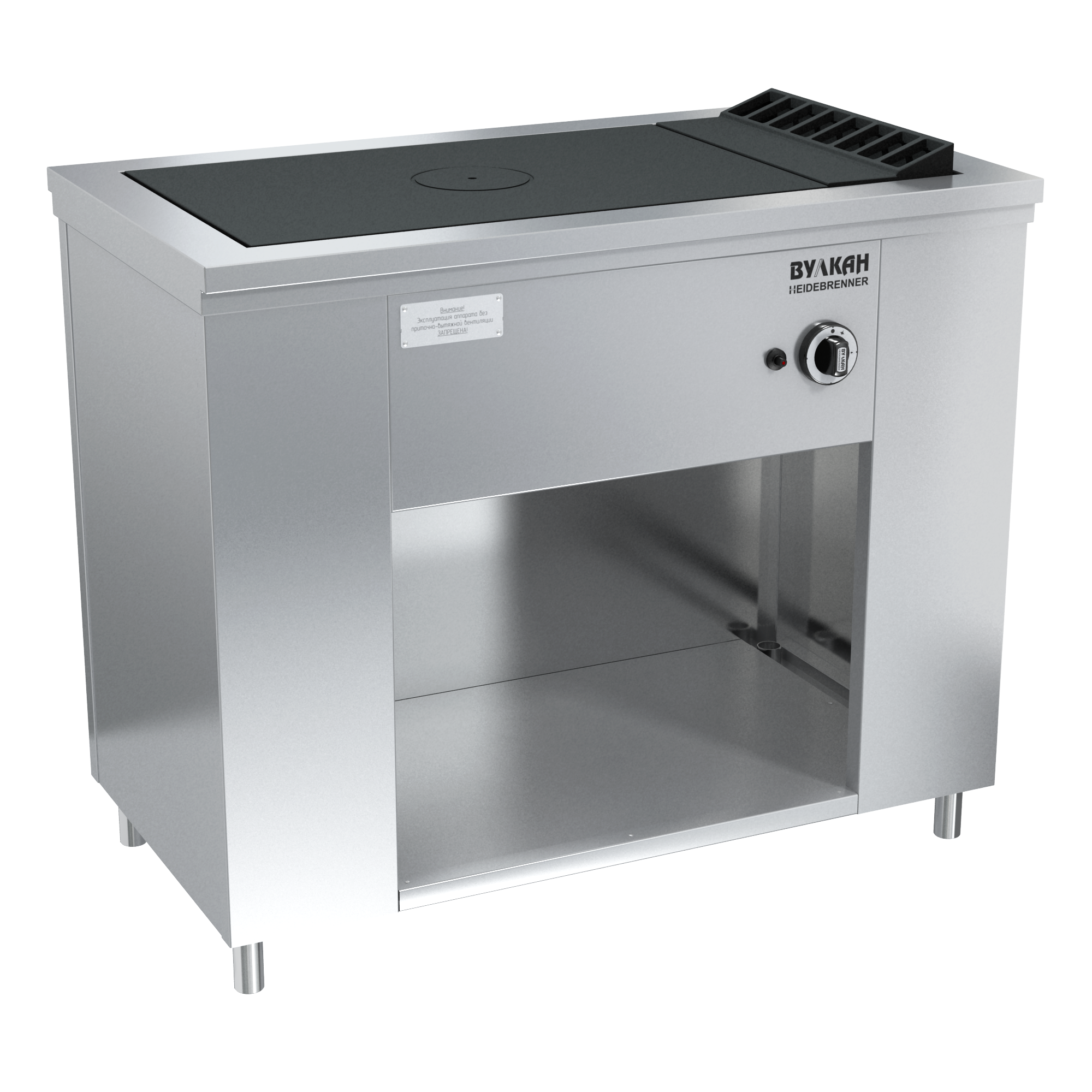 Плита из нержавеющей стали с чугунной варочной поверхностью, под которой располагается мощная горелка, быстро и равномерно нагревающая всю поверхность рабочей зоны, благодаря чему на ней можно разместить как крупные гастроемкости до 50 л, так и множество мелких. В нижней части плиты имеется ниша для хранения кухонного инвентаря. Газконтроль, запальные горелки, пьезоподжиг каждой горелки, работа на природном или сжиженном газе. Ножки плиты регулируются по высоте. *Предложение не является публичной офертой. *Изображение на фото, может отличаться от реального.