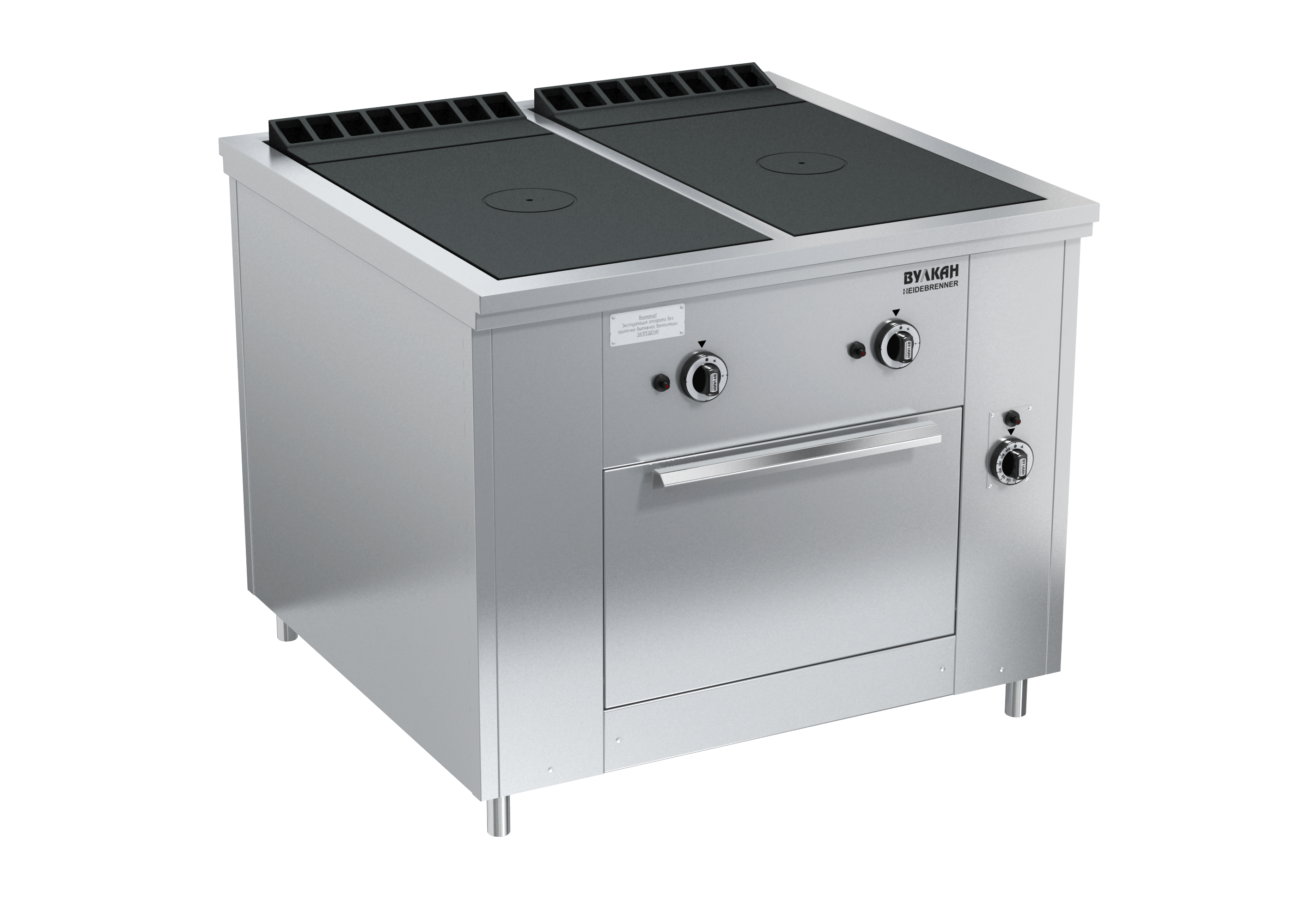 Плита из нержавеющей стали с 2-мя чугунными варочными поверхностями, под которыми располагаются мощные горелки, быстро и равномерно нагревающие всю поверхность рабочей зоны, благодаря чему на них можно разместить как крупные гастроемкости до 50 л, так и множество мелких. В нижней части плиты-жарочный шкаф с диапазоном температур 110-325°С. Газконтроль, запальные горелки, пьезоподжиг каждой горелки, работа на природном или сжиженном газе. Ножки плиты регулируются по высоте. *Предложение не является публичной офертой. *Изображение на фото, может отличаться от реального.