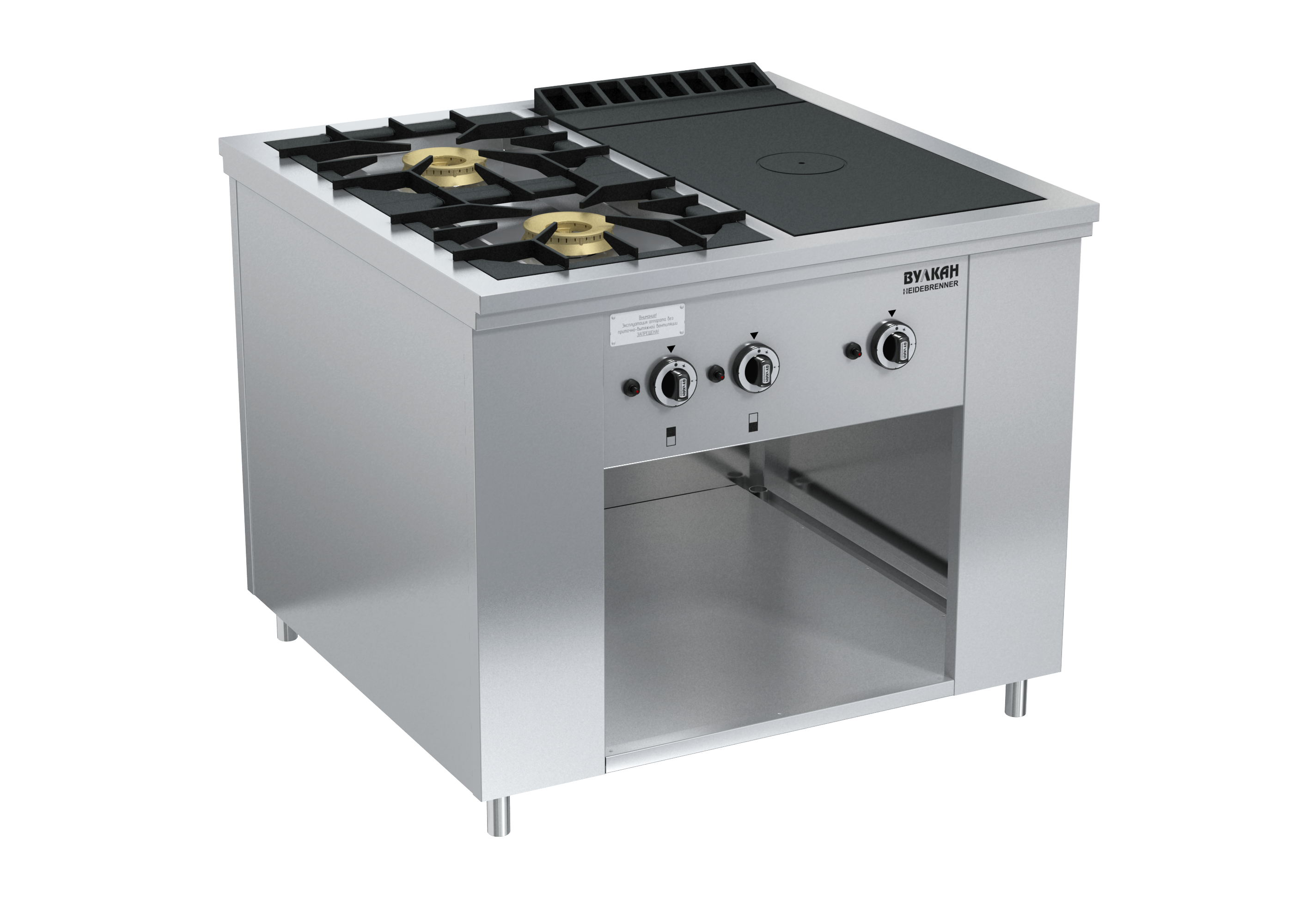 Плита из нержавеющей стали с 2-мя двухрядными горелками и варочной чугунной поверхностью. Открытые горелки имеют массивные чугунные решетки размером 430х430 мм, что позволяет размещать на них гастроемкости объемом до 50 л, съёмная подконфорочная емкость. Под чугунным настилом располагается мощная горелка, быстро и равномерно нагревающая всю поверхность рабочей зоны, благодаря чему на нем можно разместить как крупные гастроемкости, так и множество мелких. В нижней части плиты имеется ниша для хранения кухонного инвентаря. Газконтроль, запальные горелки, пьезоподжиг каждой горелки, работа на природном или сжиженном газе. Ножки плиты регулируются по высоте. *Предложение не является публичной офертой. *Изображение на фото, может отличаться от реального.