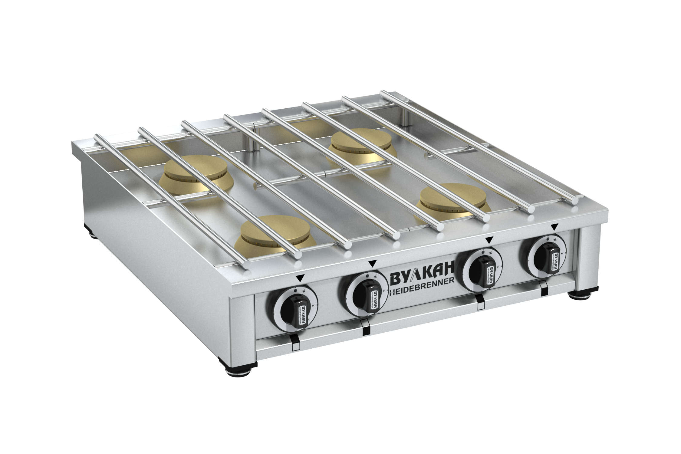 Ультратонкая настольная газовая плита из нержавеющей стали. Возможно одновременное размещение 4 кастрюль объемом 30 л. 4 латунные горелки по 4 кВт каждая, 2 съёмные решетки из нержавеющей стали, газконтроль, работа на природном или сжиженном газе. *Предложение не является публичной офертой. *Изображение на фото, может отличаться от реального.