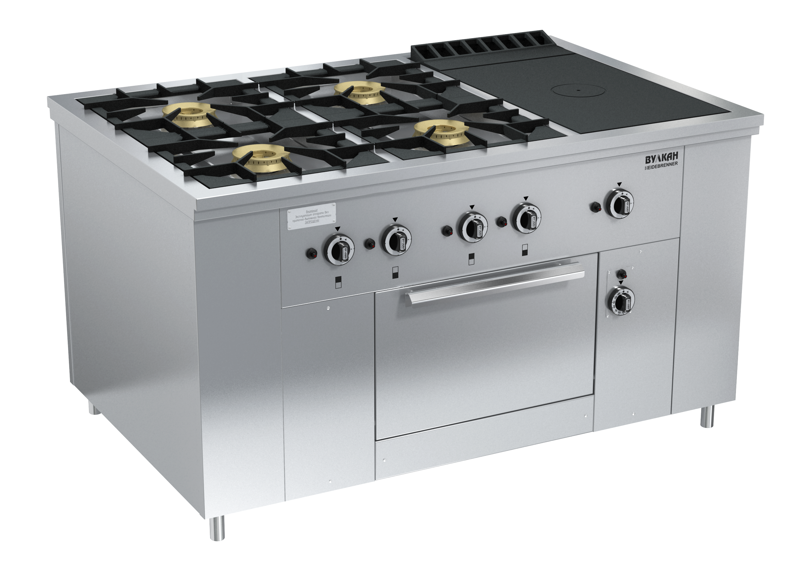 Плита из нержавеющей стали с 4-мя двухрядными горелками и варочной чугунной поверхностью. Открытые горелки имеют массивные чугунные решетки размером 430х430 мм, что позволяет размещать на них гастроемкости объемом до 50 л, съёмная подконфорочная емкость. Под чугунным настилом располагается мощная горелка, быстро и равномерно нагревающая всю поверхность рабочей зоны, благодаря чему на нем можно разместить как крупные гастроемкости, так и множество мелких. В нижней части плиты-жарочный шкаф с диапазоном температур 110-325°С. Газконтроль, запальные горелки, пьезоподжиг каждой горелки, работа на природном или сжиженном газе. Ножки плиты регулируются по высоте. *Предложение не является публичной офертой. *Изображение на фото, может отличаться от реального.