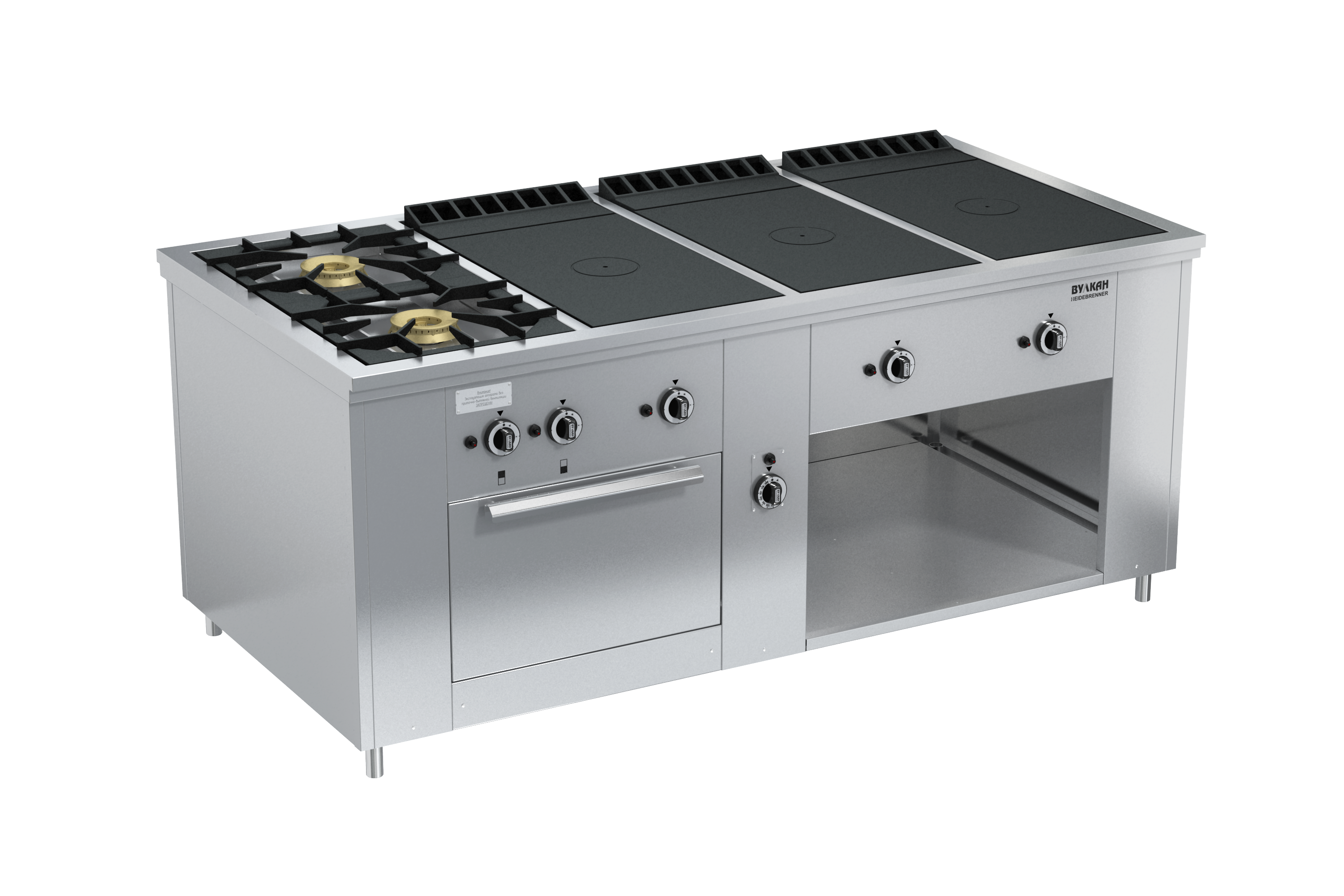 Плита из нержавеющей стали с 2-мя двухрядными горелками и 3-мя варочными чугунными поверхностями. Открытые горелки имеют массивные чугунные решетки размером 430х430 мм, что позволяет размещать на них гастроемкости объемом до 50 л, съёмная подконфорочная емкость. Под чугунными настилами располагаются мощные горелки, быстро и равномерно нагревающие всю поверхность рабочей зоны, благодаря чему на них можно разместить как крупные гастроемкости, так и множество мелких. В нижней части плиты-жарочный шкаф с диапазоном температур 110-325°С и ниша для хранения кухонного инвентаря. Газконтроль, запальные горелки, пьезоподжиг каждой горелки, работа на природном или сжиженном газе. Ножки плиты регулируются по высоте. *Предложение не является публичной офертой. *Изображение на фото, может отличаться от реального.