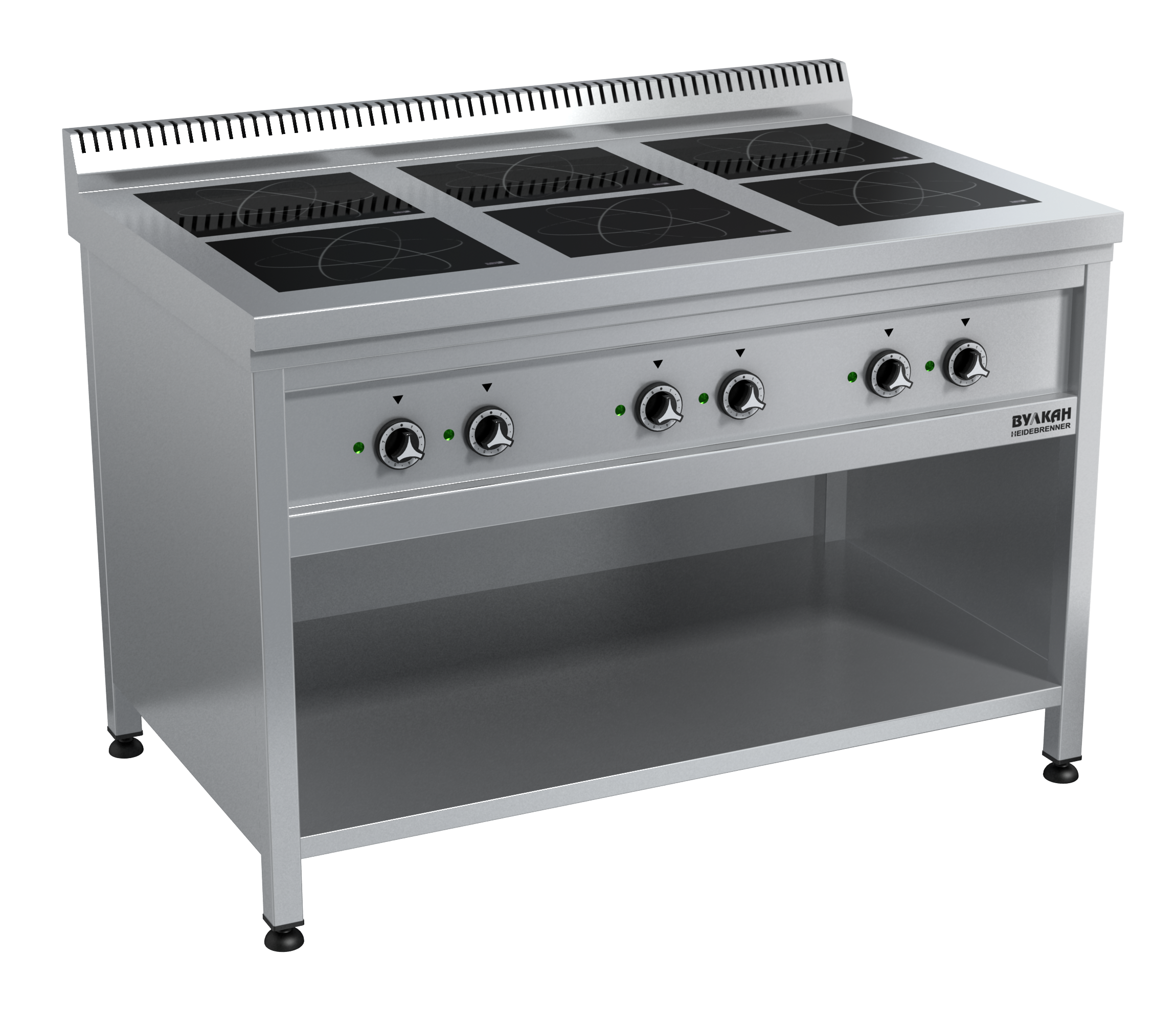 Индукционная напольная плита из нержавеющей стали имеет 6 мощных конфорок по 3,5кВт, выполненных из прочного стекла SCHOTT CERAN или EURO KERA. Мощность регулируется чувствительным 16-позиционным переключателем. Оснащена умной системой распознавания посуды.Размер комфорки 360х310 мм. Толщина стекла 6 мм. *Предложение не является публичной офертой. *Изображение на фото, может отличаться от реального.