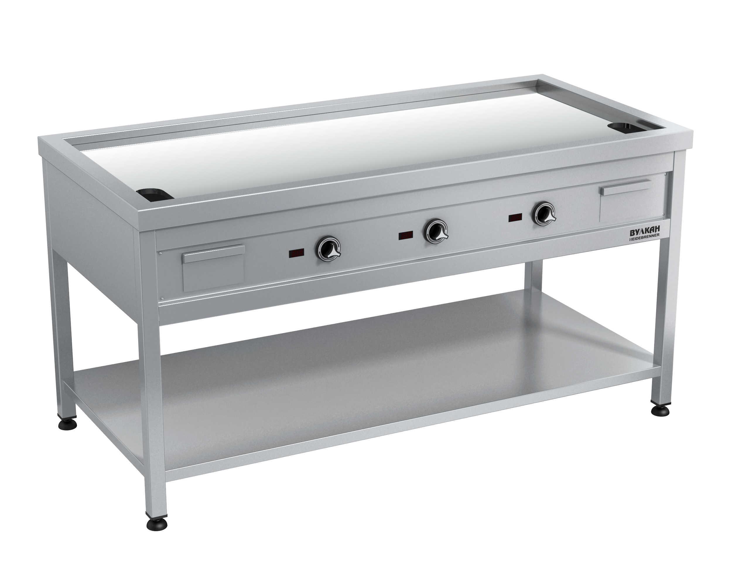 Напольная плита теппан-яки из нержавеющей стали с зеркальным хромированным покрытием, которое защищает продукты от пригорания во время жарки. На поверхности- сливное отверстие для сбора жира, съёмный жиросборник. Широкий диапазон температур каждой из 3-ех независимых зон нагрева позволяет готовить одновременно несколько блюд.Жарочная поверхность: 1396х540мм. *Предложение не является публичной офертой. *Изображение на фото, может отличаться от реального.