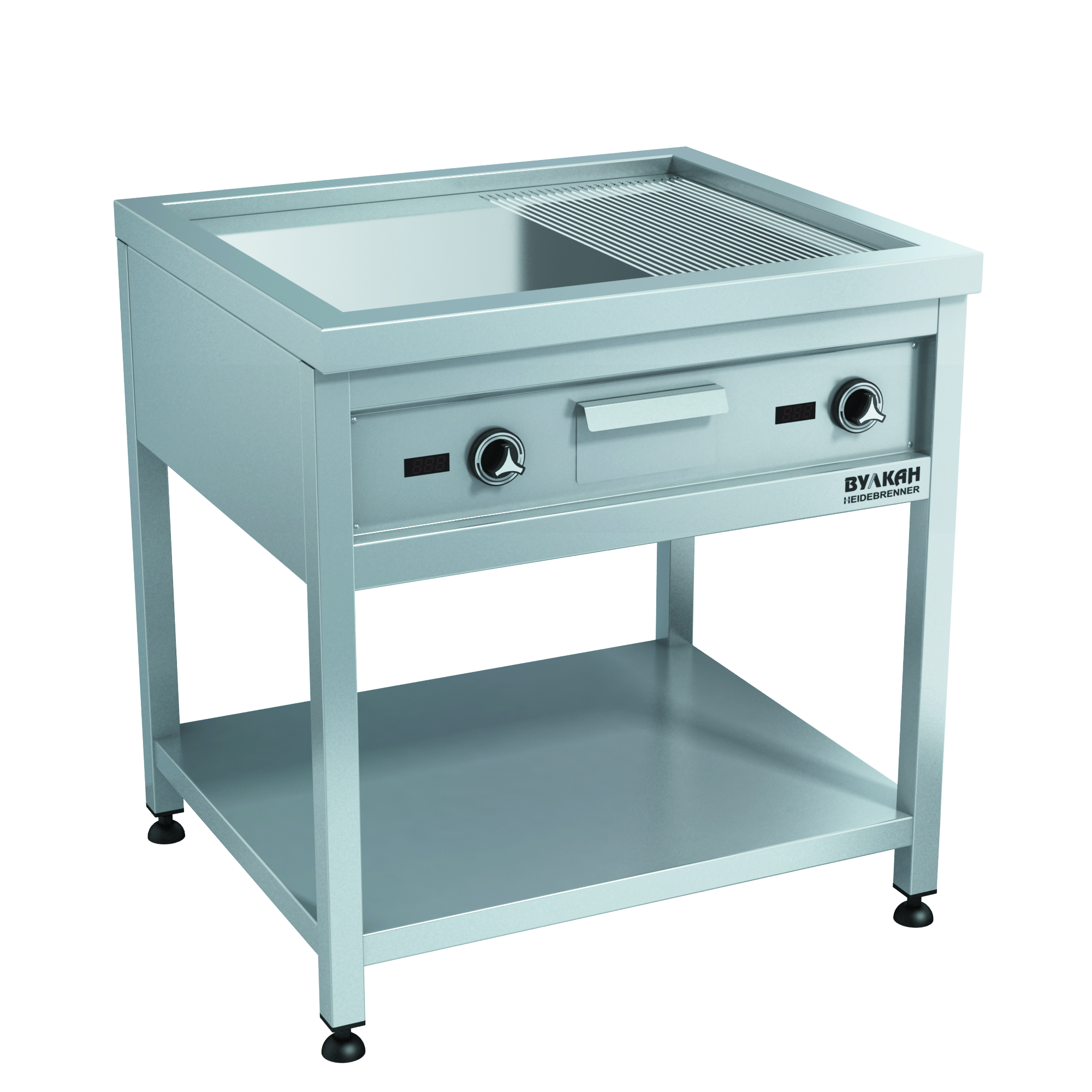 Напольная комбинированная ( ребристая/ гладкая) жарочная поверхность из стали общей толщиной 35мм, На поверхности- сливное отверстие для сбора жира, съёмный жиросборник. Рабочее поле: 630х580 мм. Благодаря специальному покрытию поверхность отлично противостоит коррозии и имеет хорошие антипригарные свойства. В зависимости от модели жарочная поверхность может иметь 1 или 2 зоны нагрева с независимым управлением. Все поверхности представлены в настольном и напольном варианте. *Предложение не является публичной офертой. *Изображение на фото, может отличаться от реального.