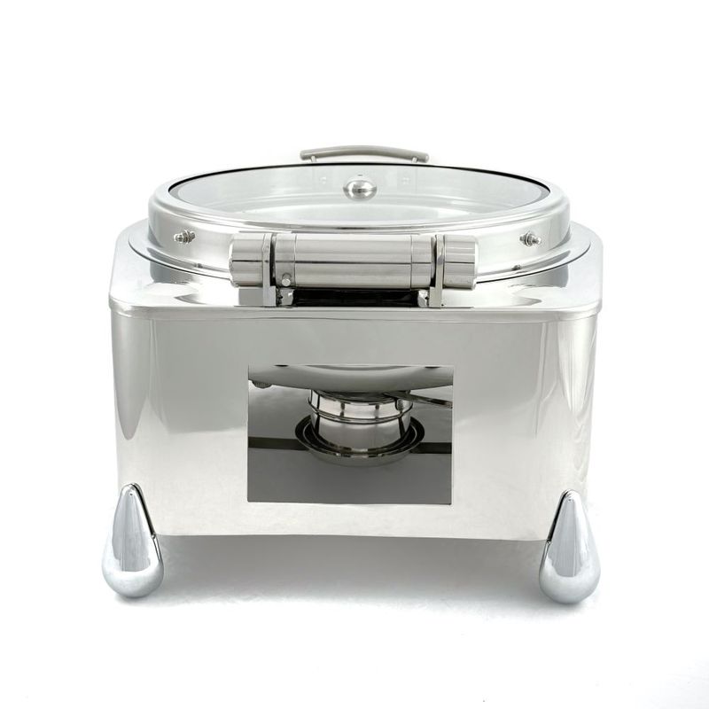 нержавеющая сталь; Размер - 45*42см h26см; емкость- d39*h7см; виды подогрева: жидкое топливо и термоэлемент EL-001