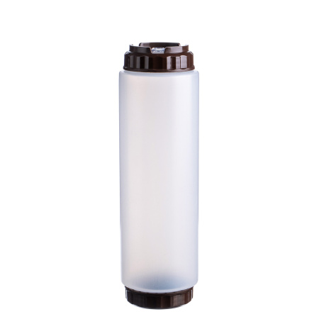 Емкость для соуса 1000 мл. d=75 мм. h=257 мм. c 2 крышками, с силик. носик. прозрачная, крышки коричневые GP /1/96/