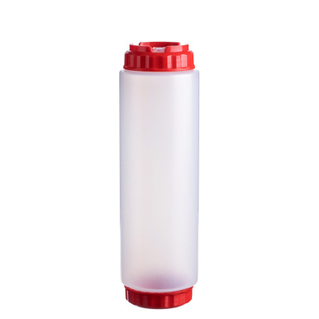 Емкость для соуса 1000 мл. d=75 мм. h=257 мм. c 2 крышками, с силик. носик. прозрачная, крышки красные GP /1/96/