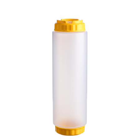 Емкость для соуса 1000 мл. d=75 мм. h=257 мм. c 2 крышками, с силик. носик. прозрачная, крышки желтые GP /1/96/