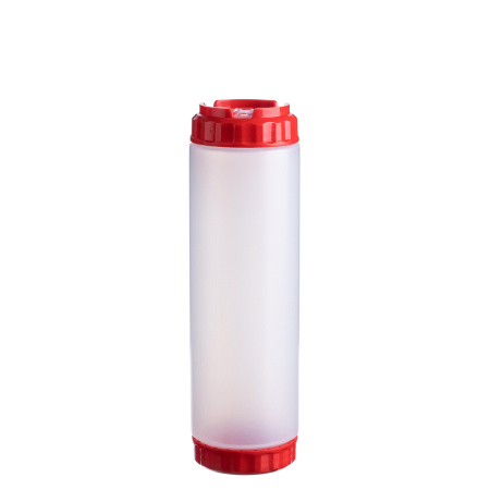 Емкость для соуса 750 мл. d=70 мм. h=237 мм. с 2 крышками, с силик. носик. прозрачная, крышки красные GP /1/96/