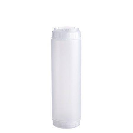Емкость для соуса 750 мл. d=70 мм. h=237 мм. с 2 крышками, с силик. носик. прозрачная, крышки прозрачные GP /1/96/